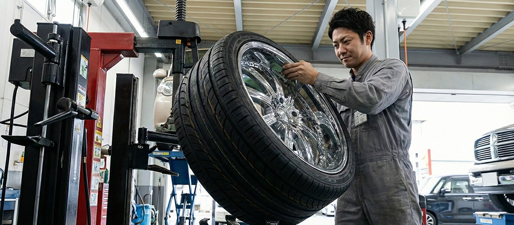 「軽自動車のタイヤ交換」から「こだわりの大口径ホイール」まで。私たちは最新の設備とプロの技術で、どんなお車のタイヤ交換にも柔軟にお応えします。ネットで購入したタイヤの持ち込みや、サイズに関するご相談もお気軽にお任せください。